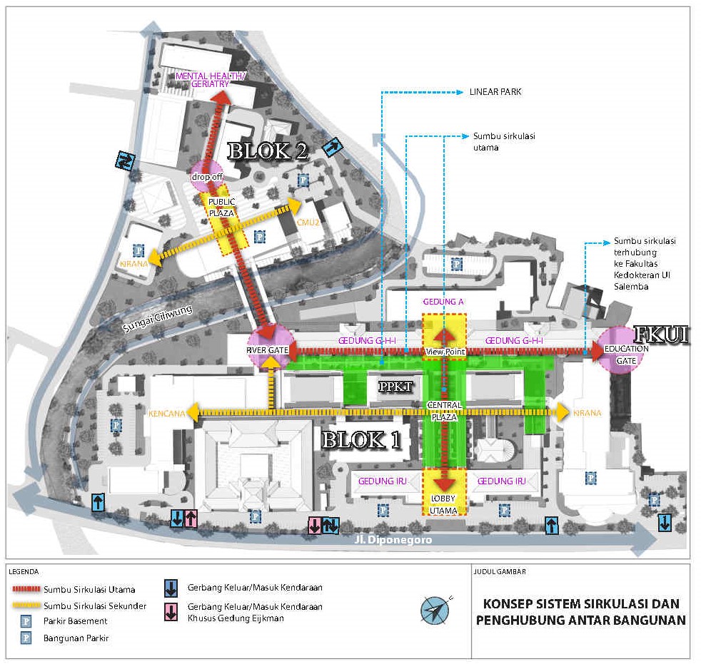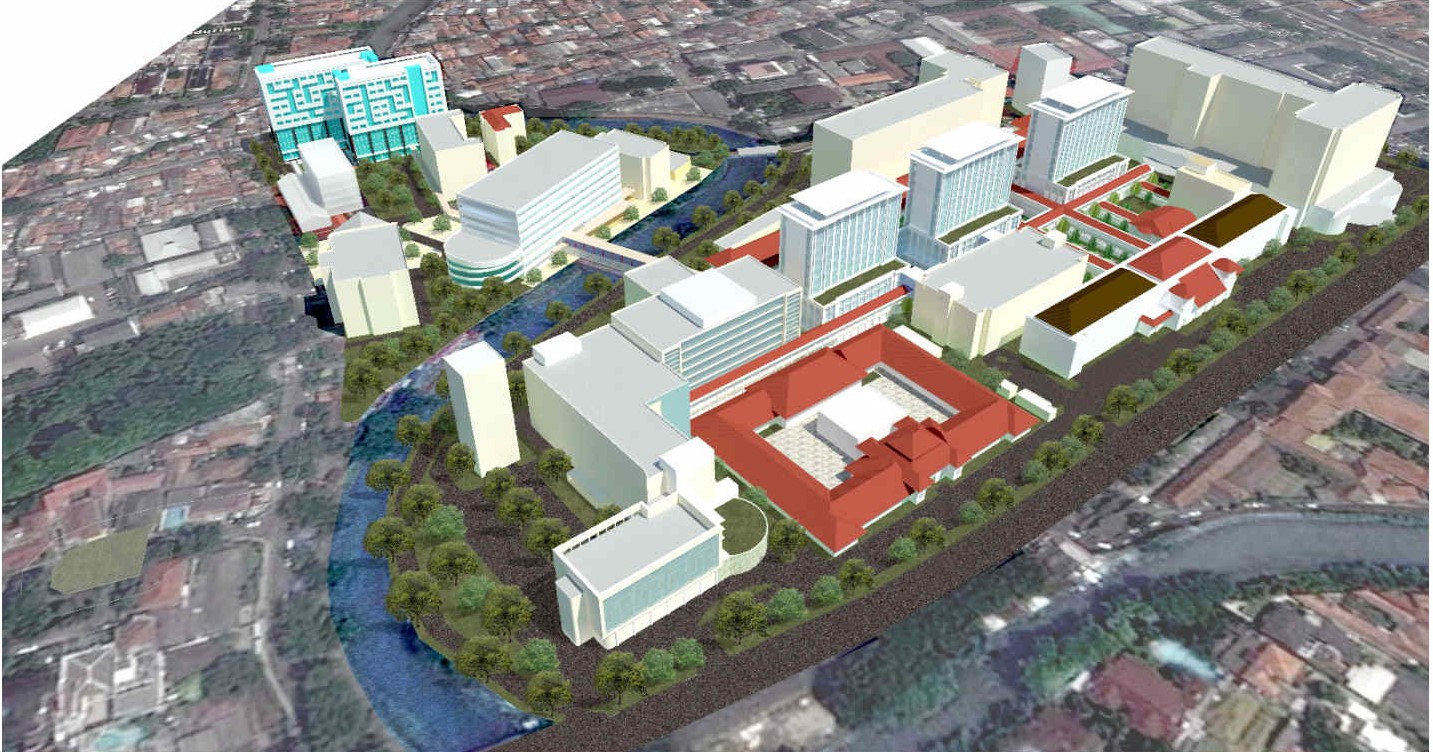Dr. Cipto Mangunkusumo General Hospital (RSCM) is a Class A teaching and national referral hospital located strategically in central Jakarta. With broad service coverage and advanced medical capabilities, RSCM plays a key role in Indonesia’s healthcare system. The 2015 Masterplan revision responds to unrealized developments from previous plans and introduces new facilities, including the National Geriatric Center, Institute of Mental Health, Oncology Center, and CMU buildings. Due to land and technical constraints, the layout and building capacities require reassessment. The updated Master plan outlines existing conditions, revisits design concepts from 2008 and 2010, and provides schematic guidance for future development. It aims to ensure that upcoming projects between 2015–2019 align with the hospital’s long-term vision, optimize land use, and enhance service delivery across specialized medical fields.